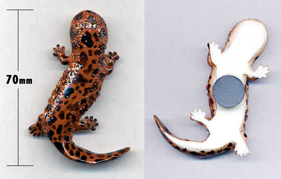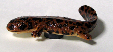 週刊日本の天然記念物35/オオサンショウウオ」の付属フィギュアがあります。海洋堂の原型で、口に川魚をくわえています。